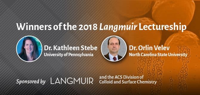 Professors Kathleen Stebe of University of Pennsylvania and Orlin Velev North Carolina State University are the winners of the 2018 Langmuir Lectureship Award, Langmuir and the ACS Division of Colloid & Surface Chemistry announce. The award recognizes individuals working in the interdisciplinary field of colloid and surface chemistry. “This year’s Langmuir lecturers are outstanding scientists who display remarkable creativity in using fundamental research in colloid and interface science to develop new materials and devices,” says Langmuir Editor-in-Chief, Françoise Winnik.
