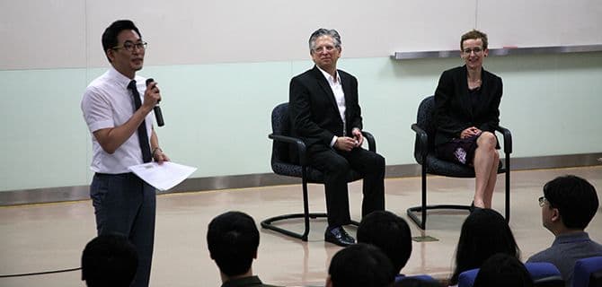 On August 8, 2018, Professors Paul S. Weiss and Jillian M. Buriak led a panel discussion on the topic of “Choosing Scientific Problems and the Resulting Papers” during the KAIST International MSE Workshop 2018: “Big Ideas in Emerging Materials.” Weiss and Buriak were there in their roles as Editors-in-Chief of ACS Nano and Chemistry of Materials, respectively.