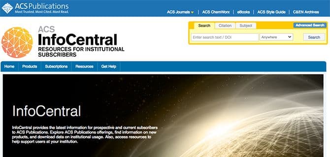 Everyone at ACS Publications is very excited to announce the launch of our redesigned InfoCentral website, which provides resources and assistance to our institutional subscribers. The new site features redesigned pages, quicker access to the most commonly used features, and additional self-serve resources for our librarians.