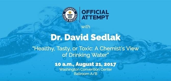 Next month, Dr. David Sedlak will try to enter the record booksby making an official attempt at the GUINNESS WORLD RECORDS™ title for the Largest chemistry lesson during the 254th ACS National Meeting & Exposition. The Editor-in-Chief of Environmental Science & Technology and Environmental Science & Technology Letters will deliver his record-breaking lecture, “Healthy, Tasty, or Toxic: A Chemist’s View of Drinking Water” at 10 a.m. on August 21 in Ballroom A/B of the Washington Convention Center. Register your interest in the meeting now and learn about the unique t-shirt you’ll get for attending.
