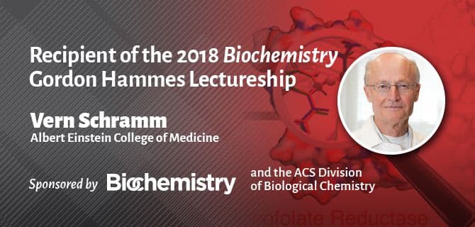 The Gordon Hammes Lecture Award is sponsored jointly by Biochemistry and the ACS Division of Biological Chemistry. The objective is to recognize and honor a single individual whose scientific contributions have had a significant impact on research at the interface of chemistry and biology. This year’s award goes to Professor Vern Schramm of the Albert Einstein College of Medicine.