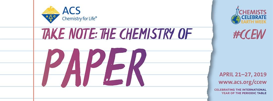 Join the American Chemical Society and ACS members across the world for Chemists Celebrate Earth Week (CCEW) from April 21-27, 2019. CCEW encourages members and science enthusiasts to build awareness of green chemistry at the local, national, and global levels. ACS local sections, schools, businesses, and individuals are invited to organize or participate in events in their communities with a common goal: communicate the positive role that chemistry plays in the world. This year, ACS in encouraging to explore various topics associated with this year’s Chemists Celebrate Earth Week theme, “Take Note: The Chemistry of Paper.”