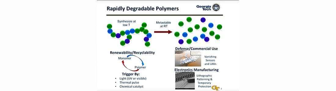Researchers at the Georgia Institute of Technology have developed new polymers that are sturdy enough to deliver packages or sensors into hostile territory — and then break down once the military mission is complete.