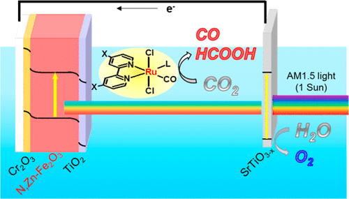 Solar-Driven Photocatalytic CO2 Reduction in Water Utilizing a Ruthenium Complex Catalyst on p-Type Fe2O3 with a Multiheterojunction