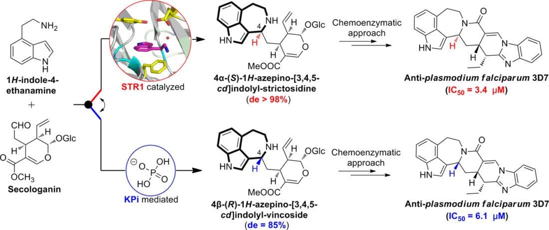 Stereocomplementary Chemoenzymatic Pictet–Spengler Reactions for Formation of Rare Azepino-indole Frameworks: Discovery of Antimalarial Compounds