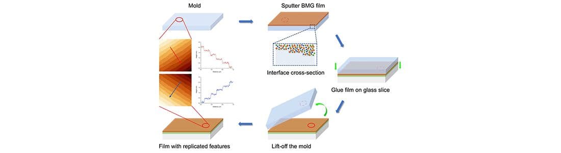 Atomic-Scale Imprinting by Sputter Deposition of Amorphous Metallic Films