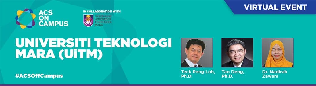 ACS on Campus, the American Chemical Society’s premier outreach program, arrived virtually on the sunny shores of Malaysia, hosting a virtual event on September 23 at Universiti Teknologi MARA (UiTM). Attendees of this 2-hour virtual event got to hear from ACS Editors and CAS specialists on their tips for publishing, peer review, and how SciFindern can assist your research process!