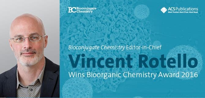Bioconjugate Chemistry Editor-in-Chief Vincent Rotello is the winner of the Royal Society of Chemistry’s Bioorganic Chemistry Award 2016. In a statement, the RSC said it was presenting the award to Rotello “for his pioneering research in using chemistry of nanomaterials to understand and modulate biological processes.”
