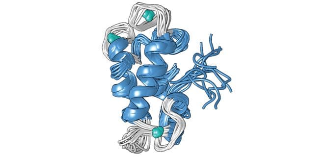 Cotruvo’s team used nuclear magnetic resonance (NMR) experiments to study the structure of lanmodulin while it was bound to yttrium ions. “Compared to calmodulin, it’s a totally different structure,” Austin says. For instance, lanmodulin’s two pairs of EF hands are much closer together, and each hand contains a crucial proline residue.