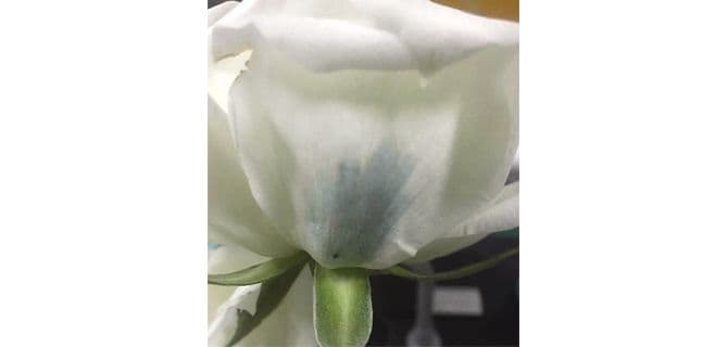 Zhang’s team added the plasmid to an agrobacterium that is widely used to transfer genes into plants. Then they injected the agrobacterium into the petal of a white rose, along with acetosyringone, a compound that induces gene transfer. After 12 hours, the petal sported a deep blue patch, which spectroscopy confirmed was caused by indigoidine.