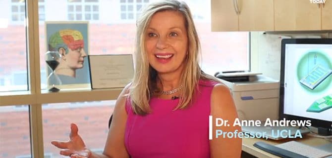 Anne Andrews is a professor of Psychiatry & Biobehavioral Sciences and Chemistry & Biochemistry at the University of California, Los Angeles. Her work focuses on basic and translational research on anxiety and depression, and at the nexus of nanoscience and neuroscience. Andrews’ interdisciplinary research team focuses on understanding how the serotonin system and particularly, the serotonin transporter, modulate neurotransmission to influence complex behaviors including anxiety, mood, stress responsiveness, and learning and memory.