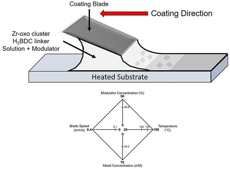 Meniscus Guided Coating and Evaporative Crystallization of UiO-66 Metal Organic Framework Thin Films
