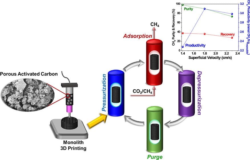 Assessment of CO2/CH4 Separation Performance of 3D-Printed Carbon Monoliths in Pressure Swing Adsorption