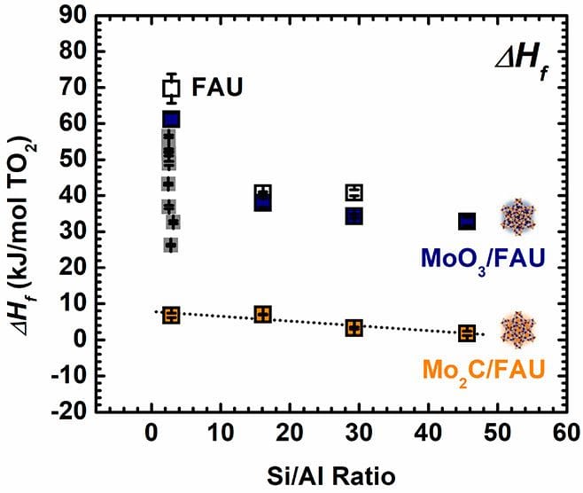 Formation Energetics and Guest—Host Interactions of Molybdenum Carbide Confined in Zeolite Y