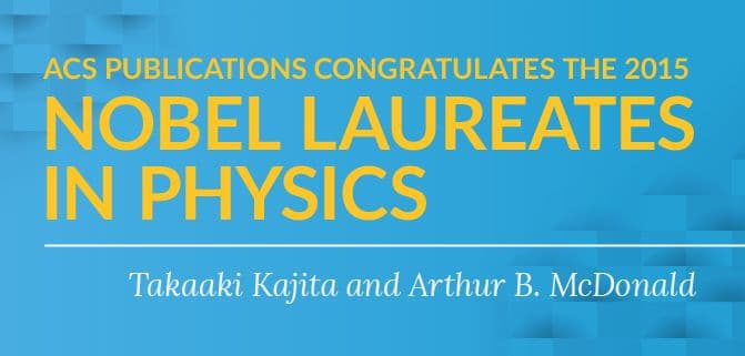 Congratulations to Takaaki Kajita in Japan and ACS author Arthur B. McDonald in Canada, who were awarded the 2015 Nobel Prize in Physics for their discovery that neutrinos have mass. Takaaki Kajita discovered that neutrinos change identities on their way to the Super-Kamiokande detector in Japan. Arthur B. McDonald showed that neutrinos from the sun did not disappear on their way to Earth, but were captured with a different identity when they arrived at the Sudbury Neutrino Observatory.
