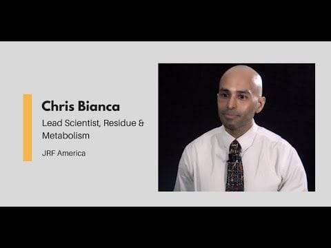 Christopher Bianca is a lead scientist in the residue and metabolism lab at JRF America. He manages a team of scientists who analyze plant, water and soil samples for applied pesticides to ensure that the food that people and animals consume is safe.