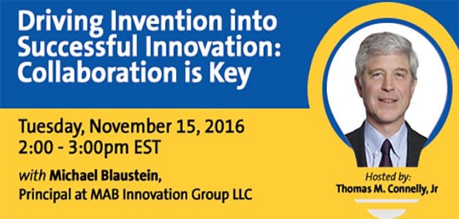 Innovation is all about getting new ideas to market and is inherently a collaborative process. Join Michael Blaustein, former Director of DuPont Ventures and current Principal of MAB Innovation Group, and ACS Executive Director and CEO Tom Connelly on Tuesday, November 15 from 2:00 p.m. until 3:00 p.m. for a unique conversation entitled, “Driving Invention into Successful Innovation: Collaboration is Key.” During this webinar, the participants will discuss different types of external collaborations and considerations for making them successful. We invite you to gather a group to make this “ACS Network & Learn” Event interactive. Invite colleagues or business professionals from your local community to join you in the Live Q&A portion of the program after the presentation and then launch your own follow-up discussion, brainstorming on how to improve invention and innovation within your organizations.