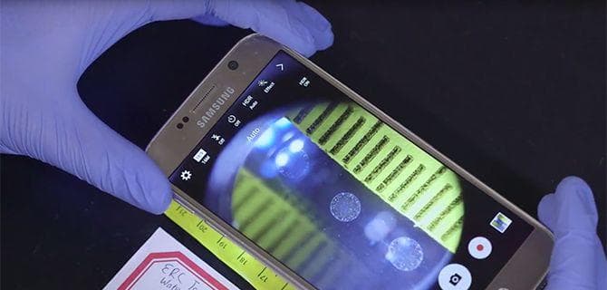 To conduct the coffee-ring analysis, Lahr, graduate student Xiaoyan Li, and undergraduates Selett Allen and Alyssa Sanderson dried droplets of various tap water samples on low-cost aluminum substrates. Then, they photographed the resulting coffee-ring effect with a cell phone through an inexpensive jeweler’s loupe. After many experiments, they obtained reproducible residue patterns for tap waters from communities across southern Michigan. They also created synthetic tap water solutions to mimic community tap waters with varied amounts of hardness, alkalinity, sodium, chloride, sulfate, total dissolved solids, iron and copper.