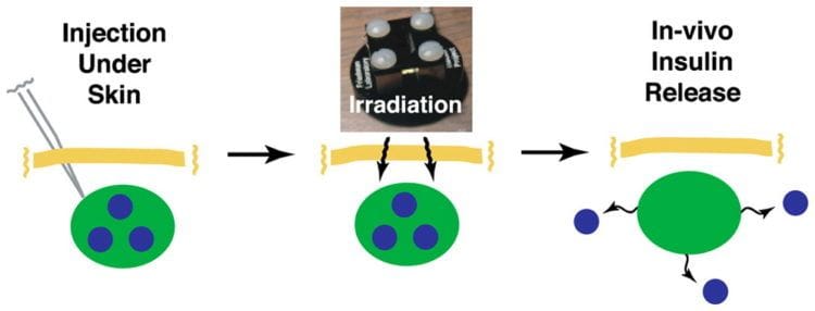 Light Control of Insulin Release and Blood Glucose Using an Injectable Photoactivated Depot