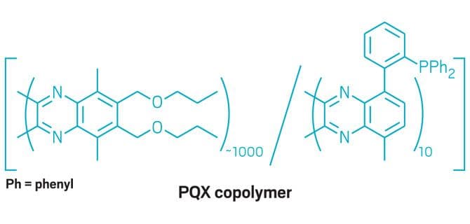 The researchers then created a PQX copolymer in which roughly 10 of the 1,000 quinoxaline units carried a (diphenylphosphino)phenyl group. They let the PQX stand in (R)-limonene for 24 h at room temperature to form the required helix and then added a palladium compound that bound to the polymer’s phosphorus atoms to produce a chiral catalyst.