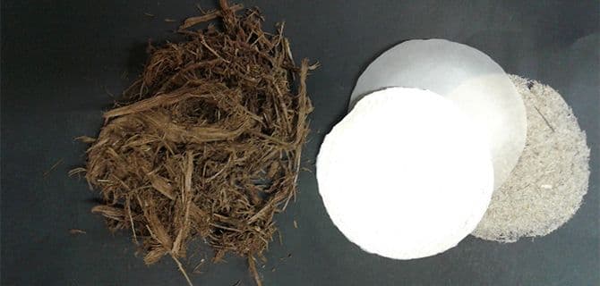 The researchers treat the manure with a sodium hydroxide solution. This partially removes lignin — which can be used later as a fertilizer or fuel — as well as other impurities, including proteins and dead cells. To fully remove lignin and to produce white pulp for making paper, the material has to be bleached with sodium hypochlorite. The purified cellulose requires little if any grinding to break it down into nanofibers in preparation for use in paper, in contrast to conventional methods.