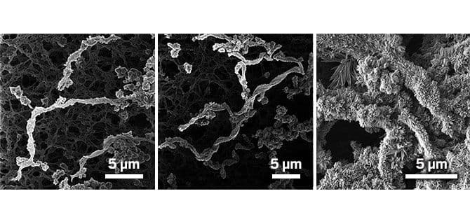 Scientists have long been fascinated by the organic-mineral filaments that extend from the surface of some iron-oxidizing bacteria living in environments from streams to hydrothermal vents. But researchers still don’t know exactly how they are formed. Now, using helium ion microscopy (HIM), a relatively new method with higher resolution than scanning electron microscopy (SEM), James […]