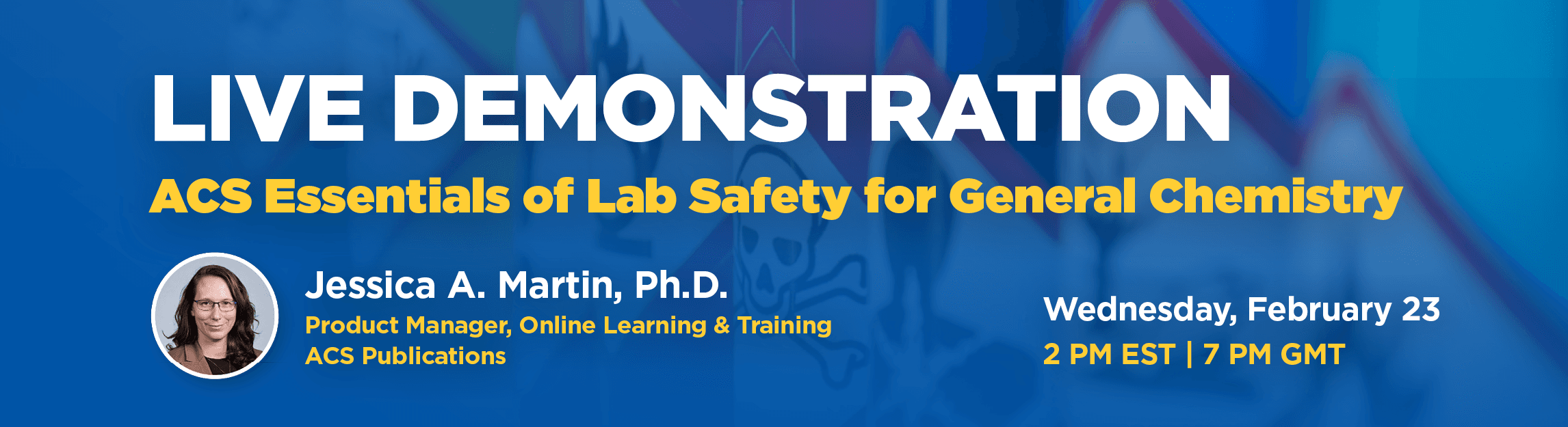 Introducing ACS Essentials of Lab Safety for General Chemistry, a 90-minute web-based course that prepares students to start general chemistry lab with a safety-first mindset. We are hosting a live virtual event on February 23 at 2 pm EST (7 pm GMT) to demonstrate the course content and features.