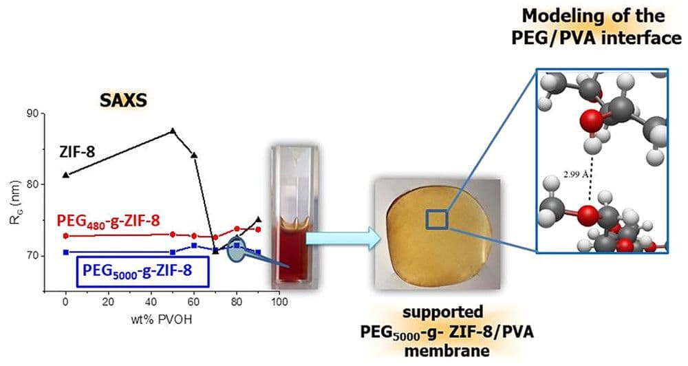 Covalent and Selective Grafting of Polyethylene Glycol Brushes at the Surface of ZIF-8 for the Processing of Membranes for Pervaporation