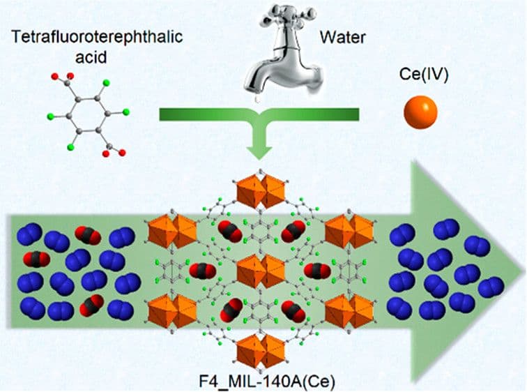 Water-Based Synthesis and Enhanced CO2 Capture Performance of Perfluorinated Cerium-Based Metal–Organic Frameworks with UiO-66 and MIL-140 Topology
