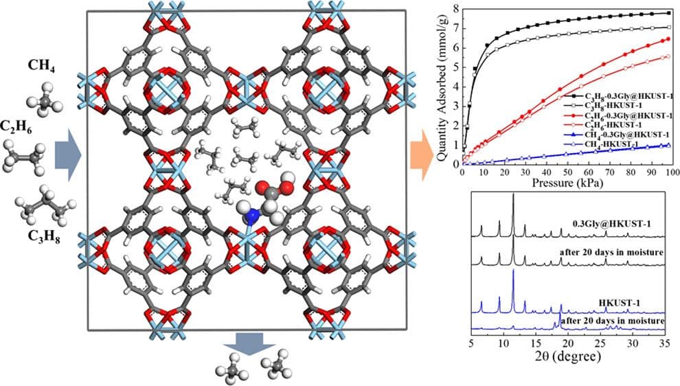 Glycine-Modified HKUST-1 with Simultaneously Enhanced Moisture Stability and Improved Adsorption for Light Hydrocarbons Separation
