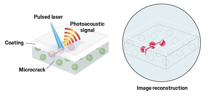 To prove the system’s mettle, the team made 1- to 7.5-µm-wide scratches on resin samples, and then coated them with a 0.5-cm-thick layer of opaque gel. Photoacoustic images clearly showed all the cracks, even though they were invisible to the eye. The widest crack was clearly visible even under a 1-cm-thick gel layer. The method should work with any material as long as light can penetrate it, Chan says. It would not work for solid metal, for instance.