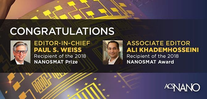ACS Nano congratulates Editor-in-Chief Paul Weiss and Associate Editor Ali Khademhosseini on their recognition by the 2018 NANOSMAT Conference with, respectively, the NANOSMAT Prize and the NANOSMAT Award. The NANOSMAT Prize was set up in 2009 to acknowledge high-caliber senior international scientists under the age of 65. Professor Weiss was selected for this year’s Prize […]