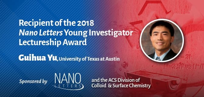 Nano Letters and the ACS Division of Colloid & Surface Chemistry are proud to announce that Professor Guihua Yu of University of Texas at Austin, is the winner of the 2018 Nano Letters Young Investigator Lectureship Award. The award honors the contributions of a young investigator who has made major impacts on the field of nanoscience and nanotechnology.