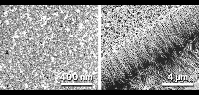 By growing a forest of fine, densely packed gold nanowires on a rubbery surface, researchers have made ultrastretchable conductive films for electronic devices. The film can stretch up to nine times its original dimensions, greater than any elastic conductor made so far. Soft, thin, and stretchable electronics could be the basis for sensors that can […]