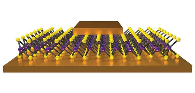 Atomristors could be used to store data, like their non-2-D counterparts, but Akinwande explored a new application for them: in telecommunications switches. Their atomristors can switch on and off at a frequency of 50 gigahertz. Right now, conventional circuits in radiofrequency switches of the sort the UT Austin group made have to remain powered on. But atomristor devices could support low-power communications networks because they only consume energy when sending signals, says Akinwande.