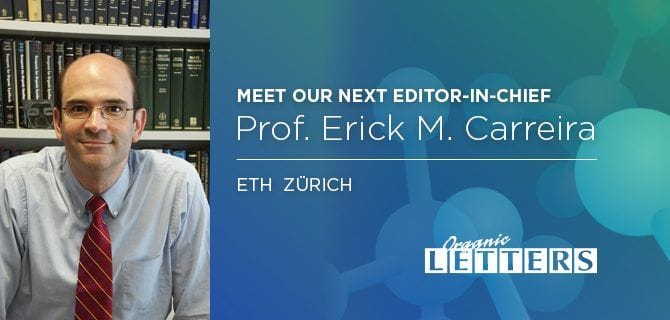 ACS Publications announced that the next Editor-in-Chief of Organic Letters will be Professor Erick M. Carreira of the Laboratory of Organic Chemistry at ETH Zürich. He has been an Associate Editor with the journal for 18 years and will succeed its inaugural Editor-in-Chief, Professor Amos B. Smith, III, who is stepping down at the end of 2018.