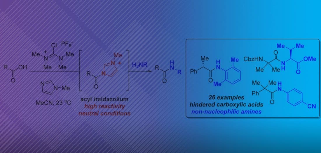 “Dr. Beutner’s paper in Organic Letters describes a wonderfully practical method for the formation of amides involving difficult reaction partners with commercially available reagents,” says Professor Erick M. Carreira, Editor-in-Chief of Organic Letters. “The study provides a brilliant, compelling solution because of the simplicity of starting materials (amines and carboxylic acids), convenience of reagents (tetramethylchloroformamidinium salt and methyl imidazole) that enable a wide range of peptide couplings.
