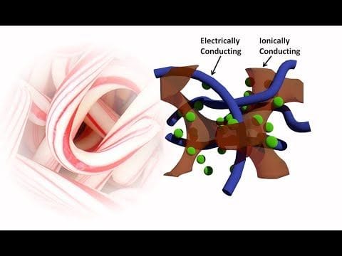 Tiesheng Wang, a graduate student in the lab of Stoyan Smoukov, Ph.D., at the University of Cambridge (U.K.) suspected that a flexible conducting polymer-based material from another project they were working on could be a better alternative. Conducting polymers, such as poly(3,4-ethylenedioxythiophene) (PEDOT), are candidate supercapacitors that have advantages over traditional carbon-based supercapacitors as charge storage materials. They are pseudocapacitive, meaning they allow reversible electrochemical reactions, and they also are chemically stable and inexpensive. However, ions can only penetrate the polymers a couple of nanometers deep, leaving much of the material as dead weight. Scientists working to improve ion mobility had previously developed nanostructures that deposit thin layers of conducting polymers on top of support materials, which improves supercapacitor performance by making more of the polymer accessible to the ions. The drawback, according to Wang, is that these nanostructures can be fragile, difficult to make reproducibly when scaled-up and poor in electrochemical stability, limiting their applicability.