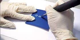 Next, the researchers wrote on the paper with an electric pen that uses heat as “ink.” They also used a thermal printer to print text and images on the paper, and shone infrared light through a stencil to print images on transparent cell phone cases with the rewritable paper inside them. The text and images remained visible even after storing the printed materials on lab benches at room temperature for six months. As before, the paper became completely blue again in about five minutes below -10 °C.