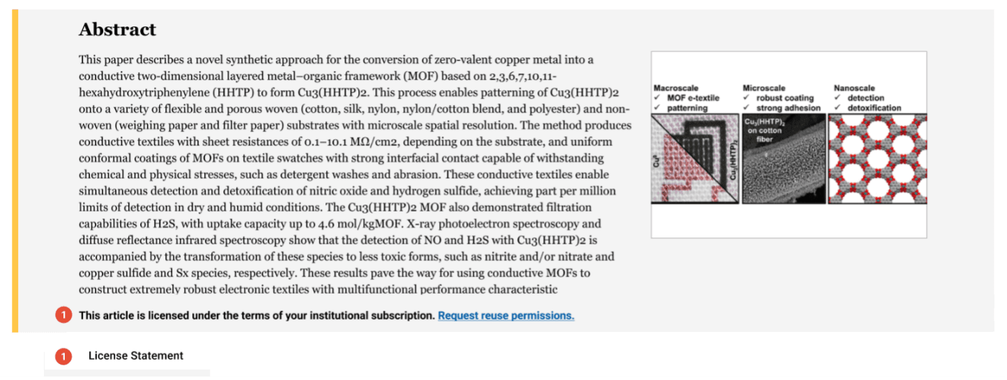 License information is also included at the end of the article abstract on the ACS Publications website, making it clearer how readers can continue to access the most relevant research to them without needing to search through the page for information.